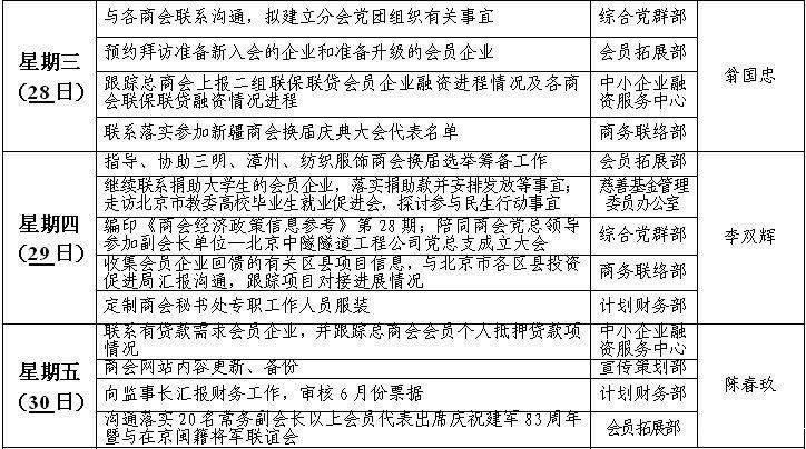 秘书处周工作计划(5月31日—6月6日)